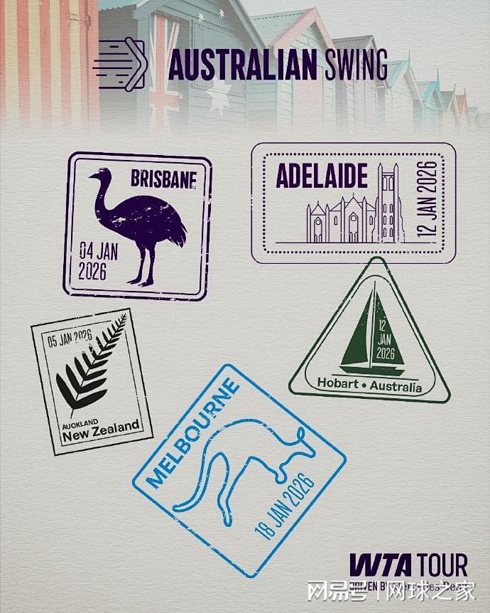 而即将开打的澳洲赛季,将有多站比赛上演。除了联合杯网球混合团体赛和首项大满贯赛事--澳网之外,还有布里斯班和阿德莱德这两站WTA500赛事,奥克兰和霍巴特这两站WTA250赛事。其中,WTA500布里斯班站将在1月4日--11日进行,同期开打的是WTA250奥克兰站;WTA500阿德莱德站将接棒进行,比赛日期是1月12日--17日,同期进行WTA250霍巴特站的比赛。澳洲赛季的压轴大戏--澳网将在1月18日--2月1日进行。