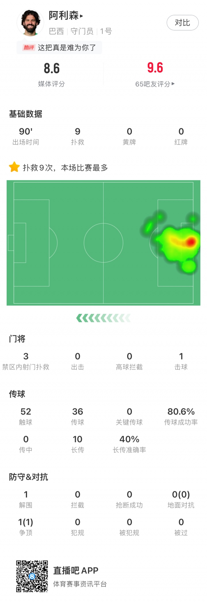 开云移动端-森爹!阿利森单场9次扑救,唯一没扑出去的是玻利维亚的点射